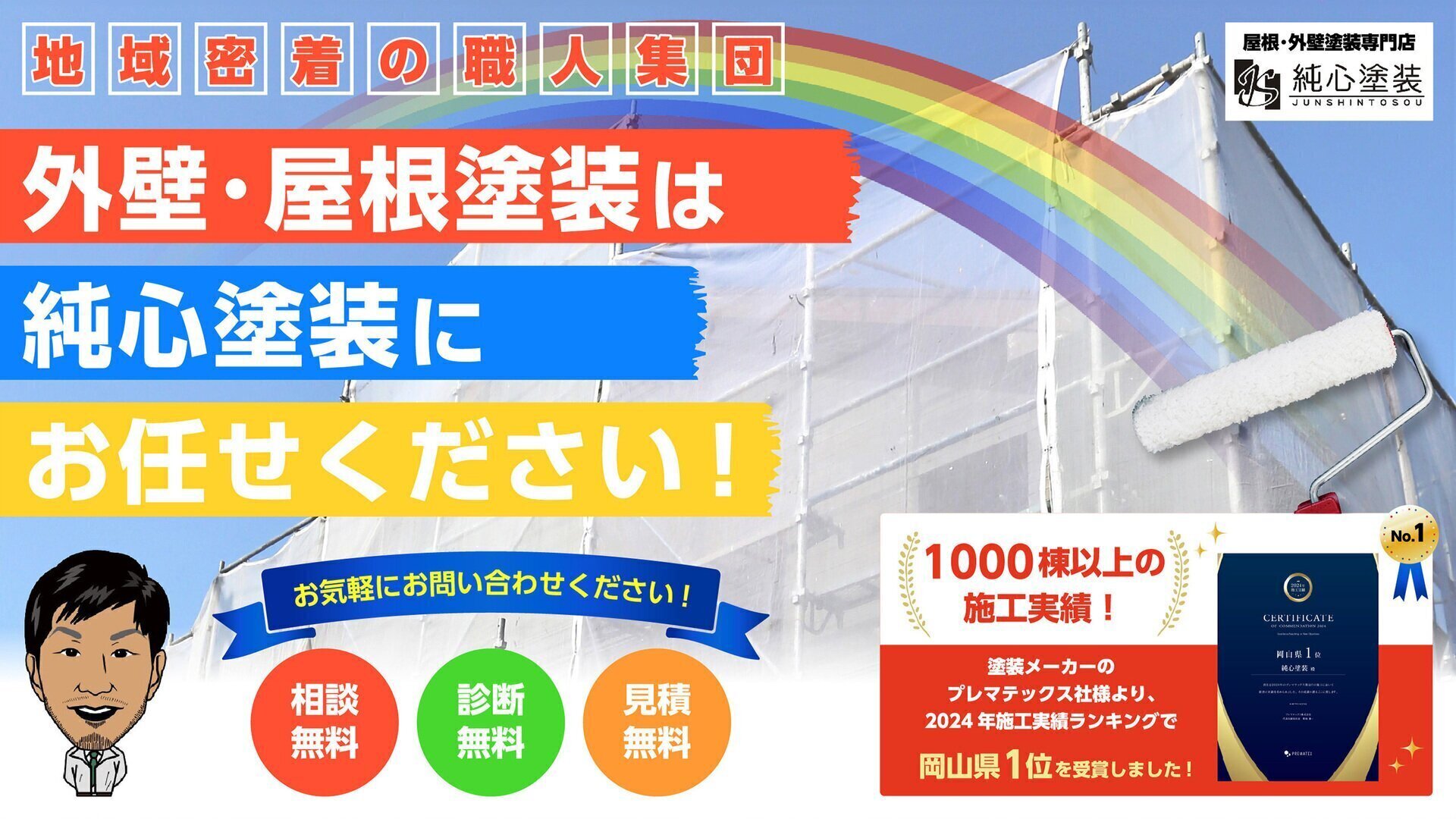 純心塗装は、岡山県井原市を中心に岡山県南部で外壁塗装、屋根塗装などの各種塗装工事を手掛けております。その他のエリアはお問合せください。