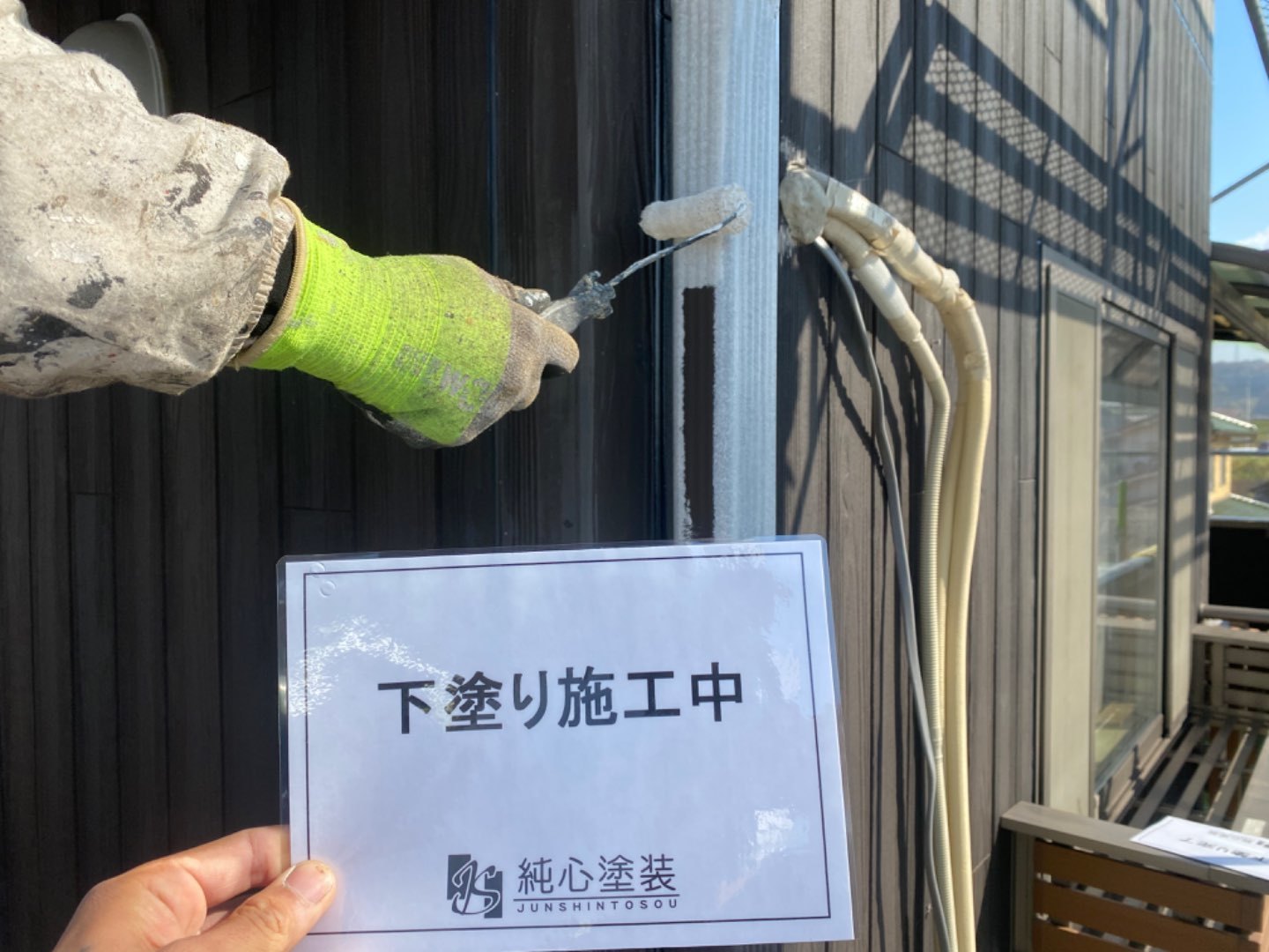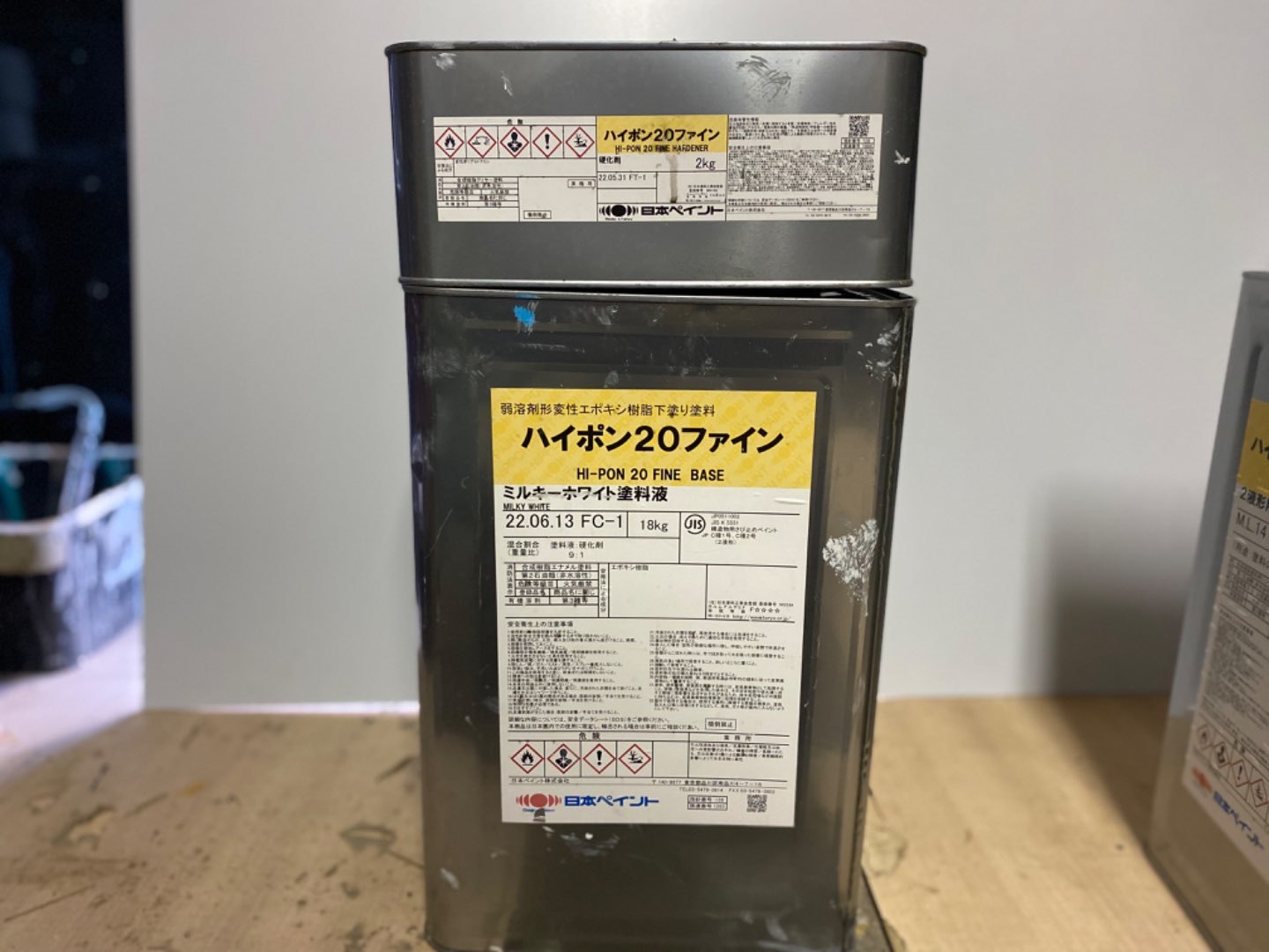 今回のお客様の付帯部は金属製の素材なので日本ペイントのハイポン20ファインを使用しました。