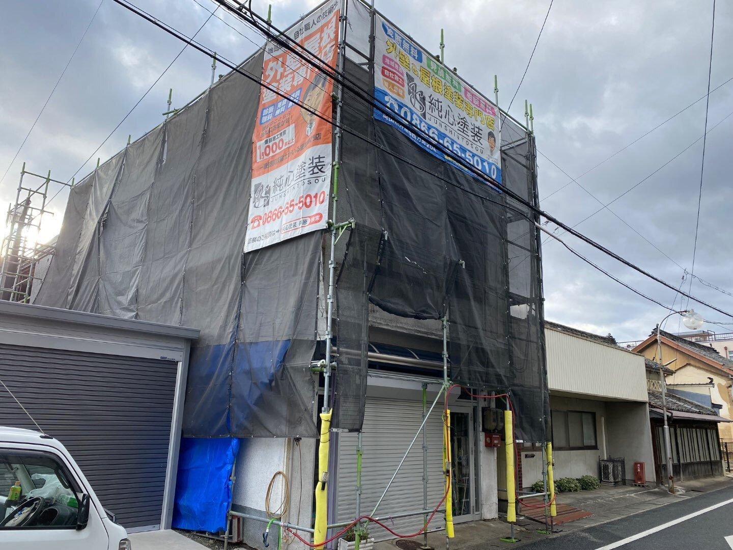 井原市井原町にて屋根、外壁塗装工事を開始しました!