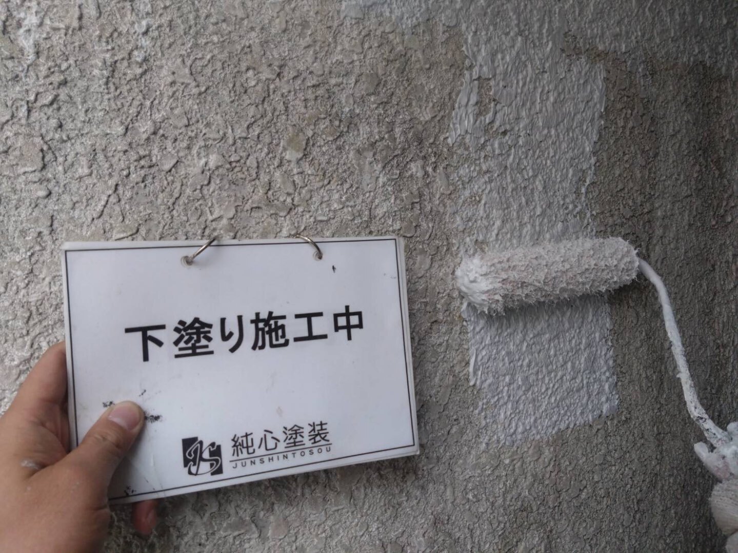 外壁の状態に合わせた下塗り材を使用し、塗りムラや塗り残しが出ないよう細部まで丁寧に施工しました。