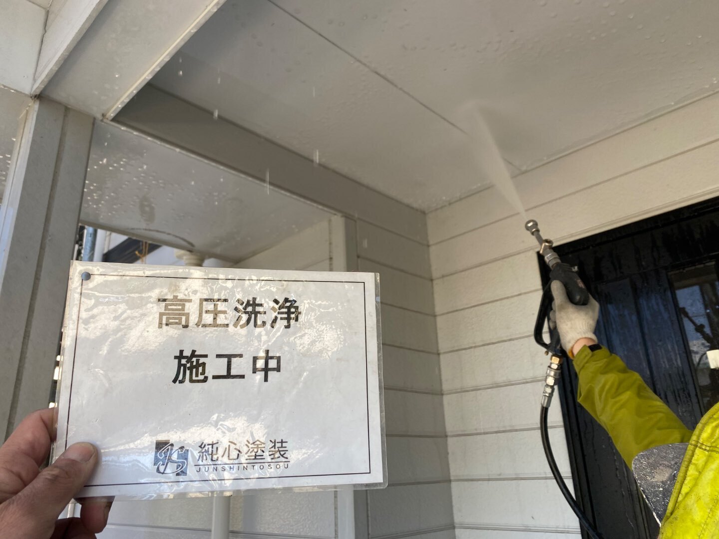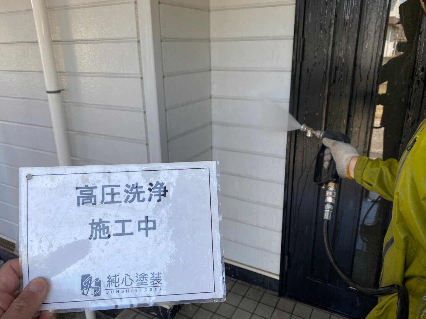 純心塗装では、塗装の仕上がりや耐久性を高めるために、時間をかけて丁寧に洗浄作業を行っています。