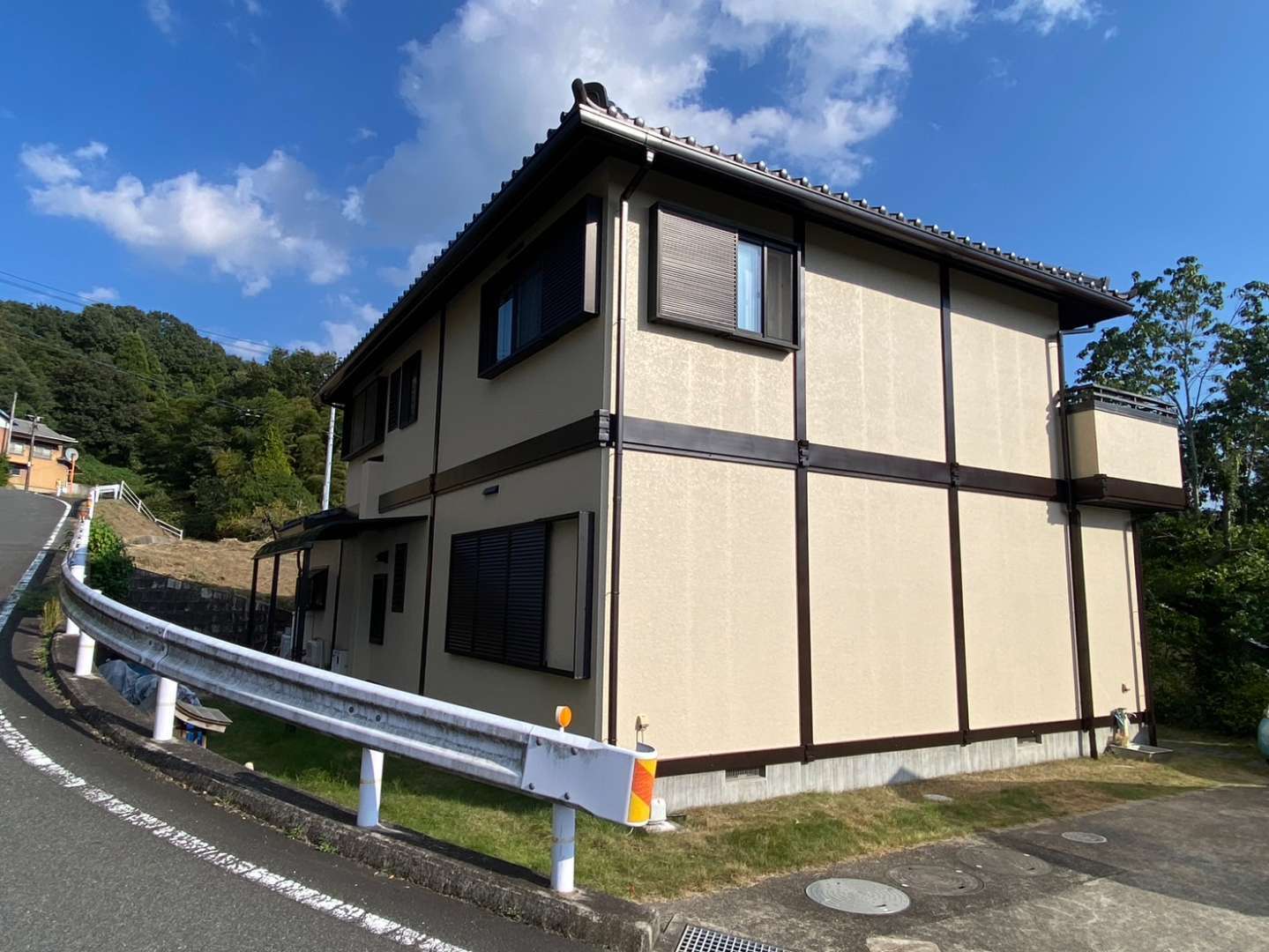 井原市上出部町四季が丘にて外壁塗装工事をご依頼いただきました。 施工内容:外壁塗装 付帯部塗装 コーキング打ち替え工事 外壁使用材料:ア…
